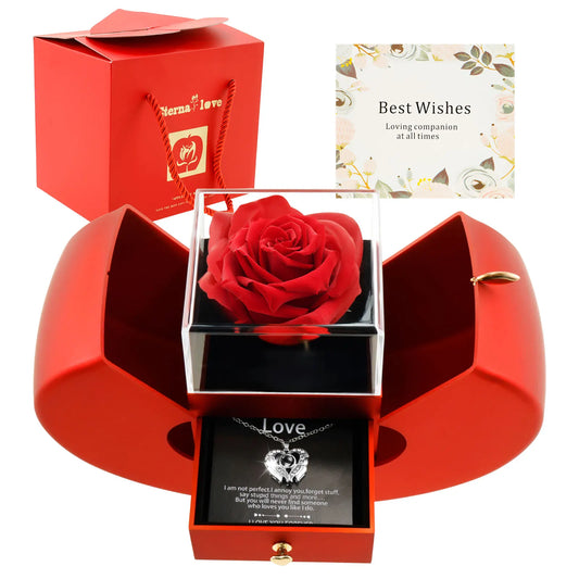 Heart-Shaped Red Rose Necklace with Jewelry Box